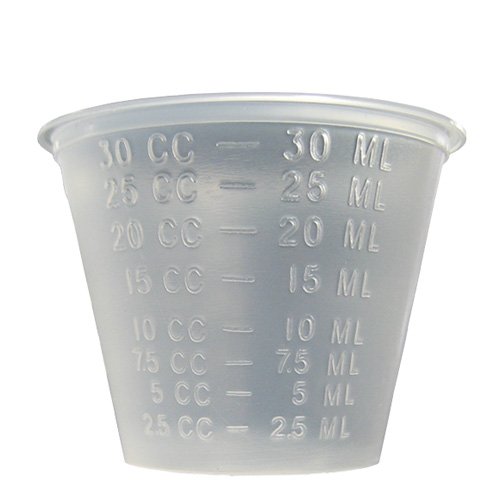 ■30mlまで計量可能なプラスチックカップです。(2.5、5、7.5、10、15、20、25、30mlの目盛が入っております。)