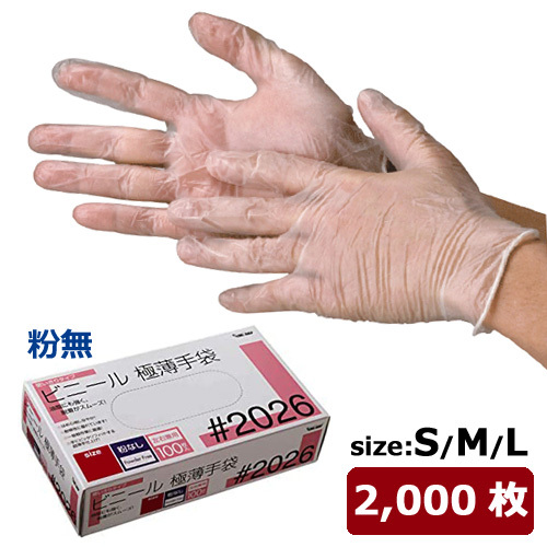 作業用使い捨て手袋 2026 ビニール使いきり手袋 粉無 2000枚