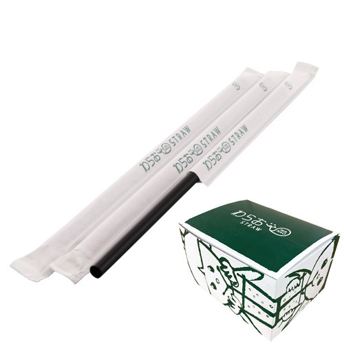 紙包装ストレートストロー6mm×210mm 黒 500本