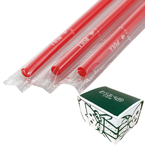 フィルム包装ストレートストロー6mm×210mm 赤 500本