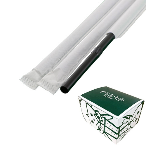 紙包装フレックスストロー6mm×210mm 黒 500本