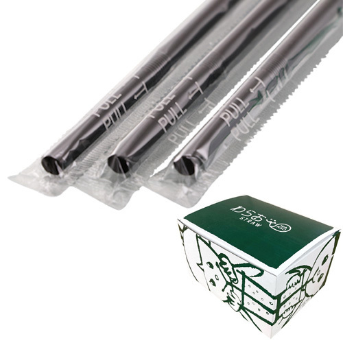 フィルム包装フレックスストロー6mm×210mm 黒 500本