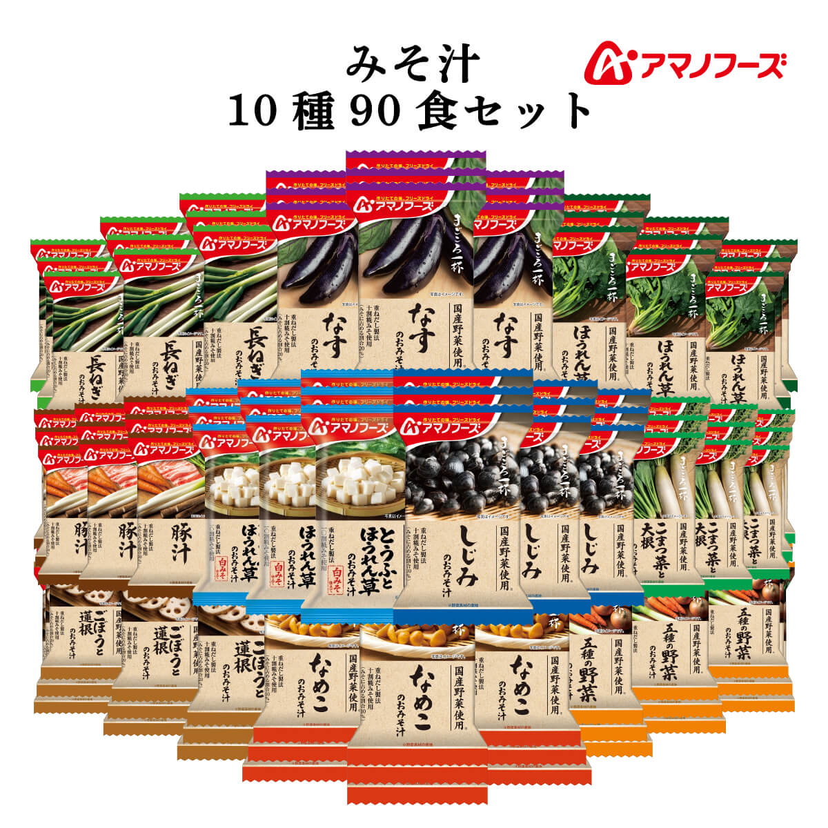 | 内容量 | ■ まごころ一杯 なす 9.8g しじみ 赤だし 15.9g とうふとほうれん草 9.5g ほうれん草 8.5g 小松菜と大根 9.3g 長ねぎ 8.2g とん汁 13.7g ごぼうと蓮根 9.1g なめこ 赤だし 8.3g 五種の野菜 10.5g 10種 各9食 合計90食 |