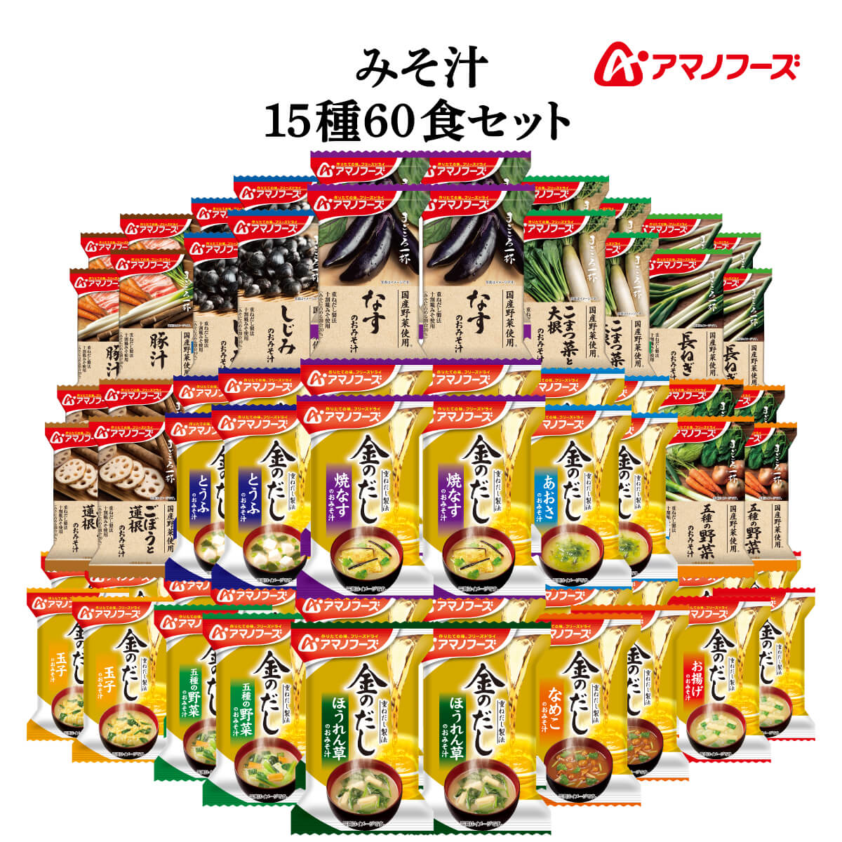 | 内容量 | ■ まごころ一杯 なす 9.8g しじみ 赤だし 15.9g 小松菜と大根 9.3g 長ねぎ 8.2g とん汁 13.7g ごぼうと蓮根 9.1g 五種の野菜 10.5g ■ 金のだし 焼なす 8.6g とうふ 8.4g あおさ 7.5g ほうれん草 8.4g 五種の野菜 8.5g 玉子 9.2g なめこ 赤だし 8.5g お揚げ 10g 15種 各4食 合計60食 |