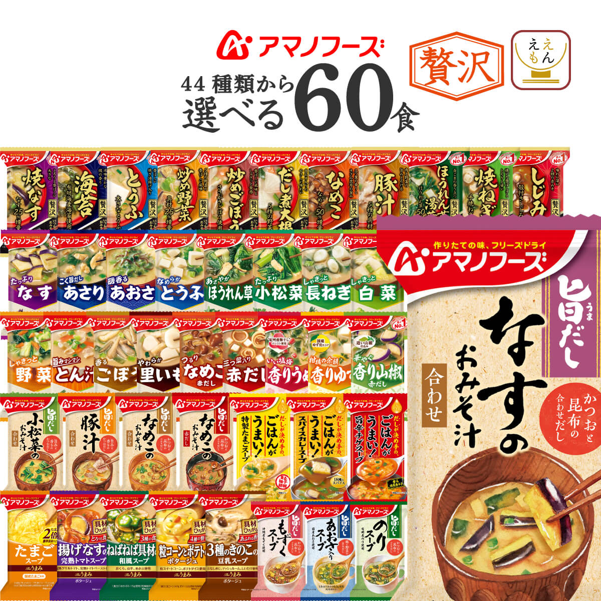 ![]() 選べる味噌汁・スープ 贅沢30食 | ![]() 選べる味噌汁・スープ 豪華60食 |