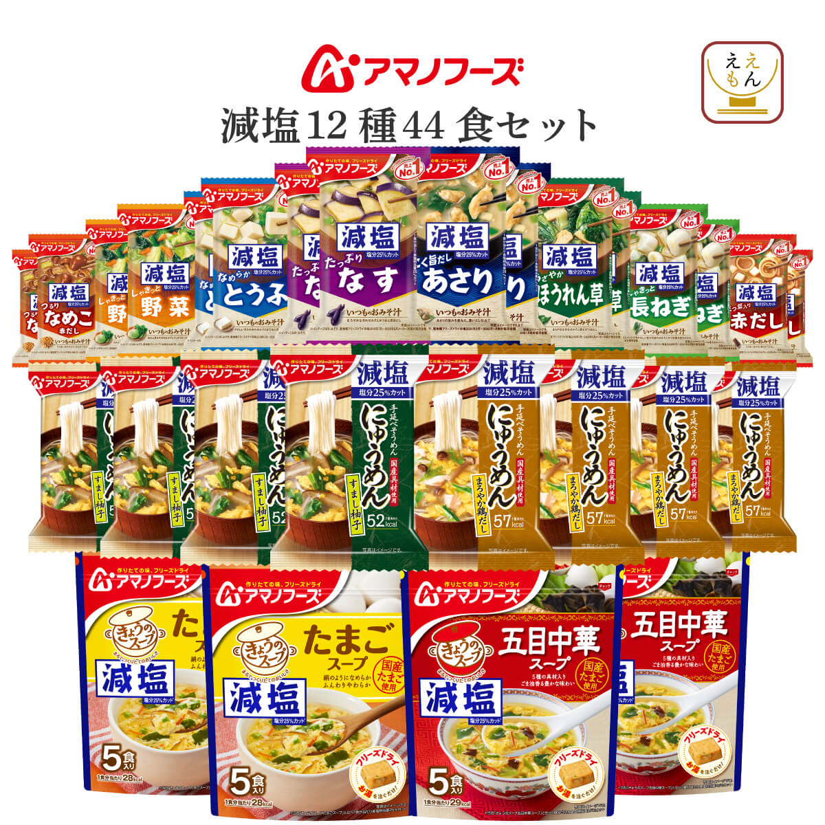 | リニュアル内容 | 下記商品を追加して11種42食から12種44食にリニューアルしました。 ■ 減塩 いつものおみそ汁 減塩あさり 7.5g |