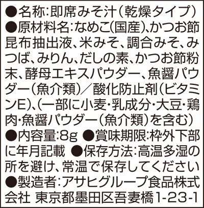 | 内容量 | ■ 旨だし おみそ汁 なめこ 赤だし 8g 10食 |