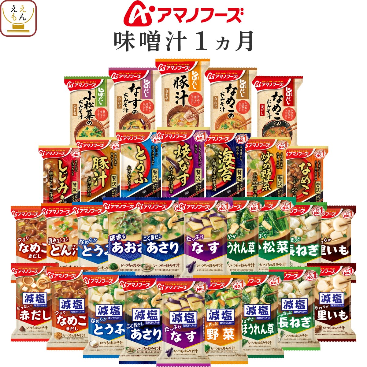 ![]() 味噌汁 1ヶ月 31種31食 | ![]() 味噌汁 2ヶ月 31種62食 |