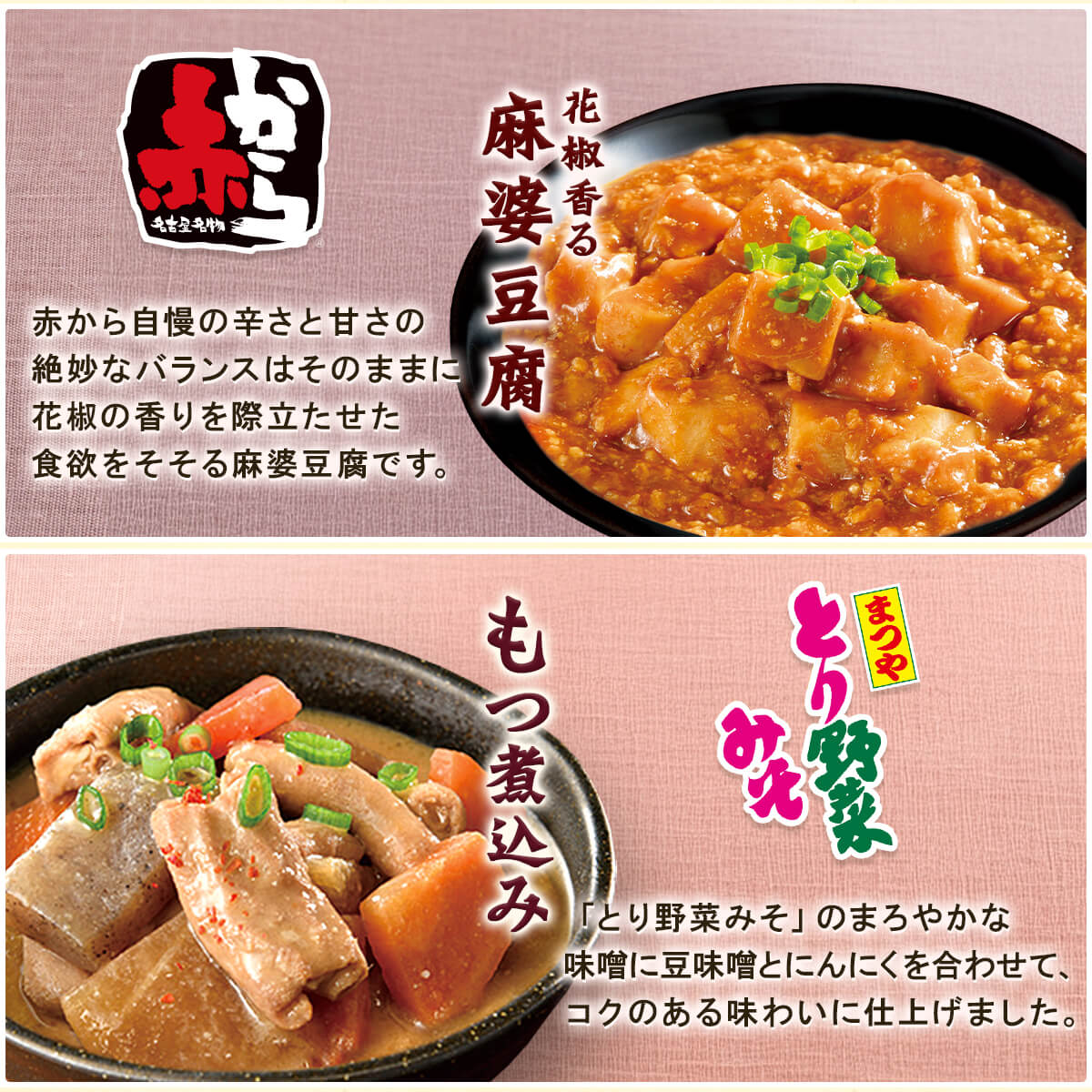 | リニューアル内容 | 下記商品が終売のため、Bグループの選べる選択肢を9種類に変更しました。 赤から一人前鍋 170g とり野菜みそ一人前鍋 170g |
