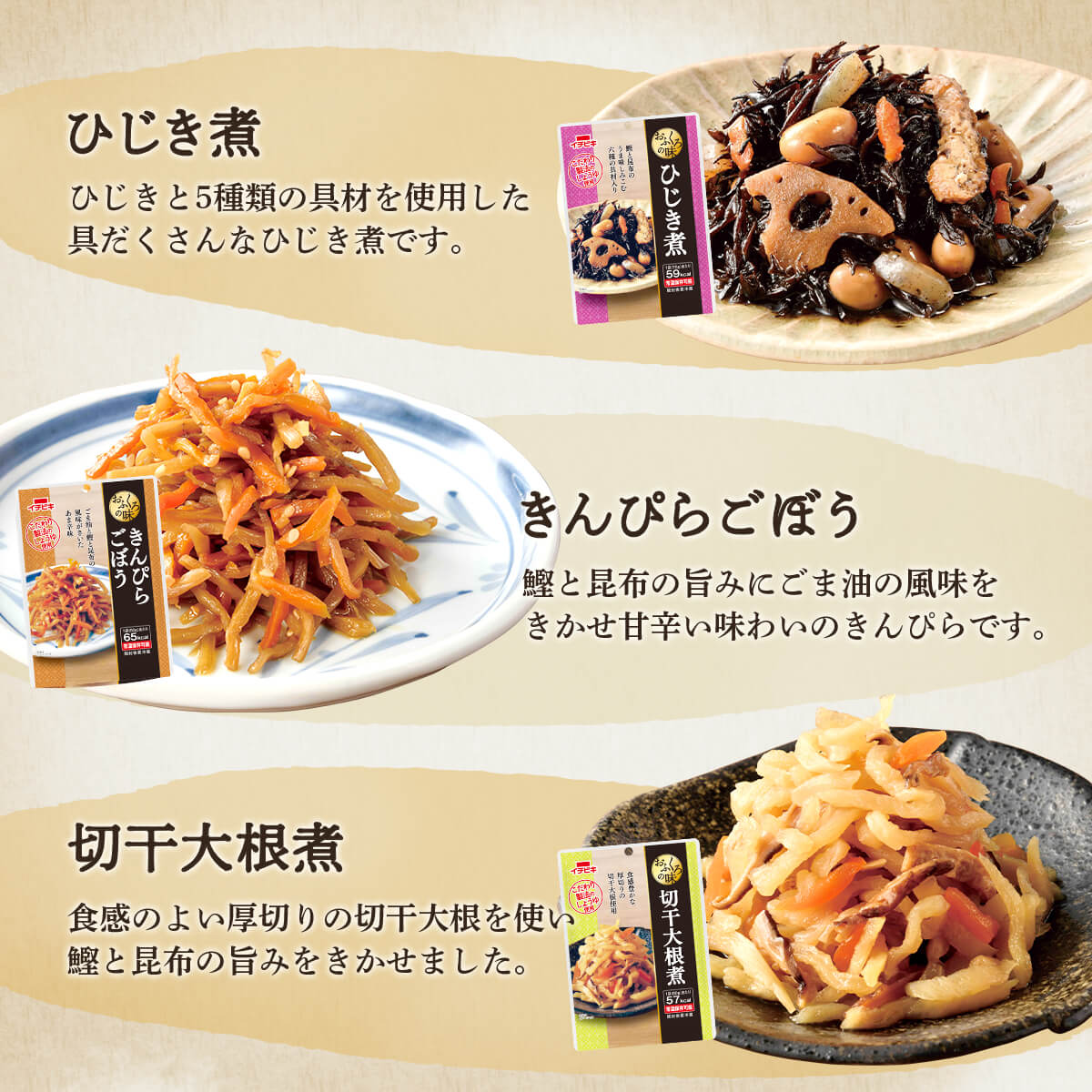 | リニューアル内容 | おふくろの味 「里いもの煮っころがし」が「さといも煮」にリニューアルしました。 |
