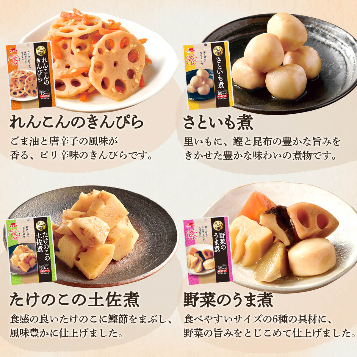 | リニューアル内容 | おふくろの味 「里いもの煮っころがし」が「さといも煮」にリニューアルしました。 |