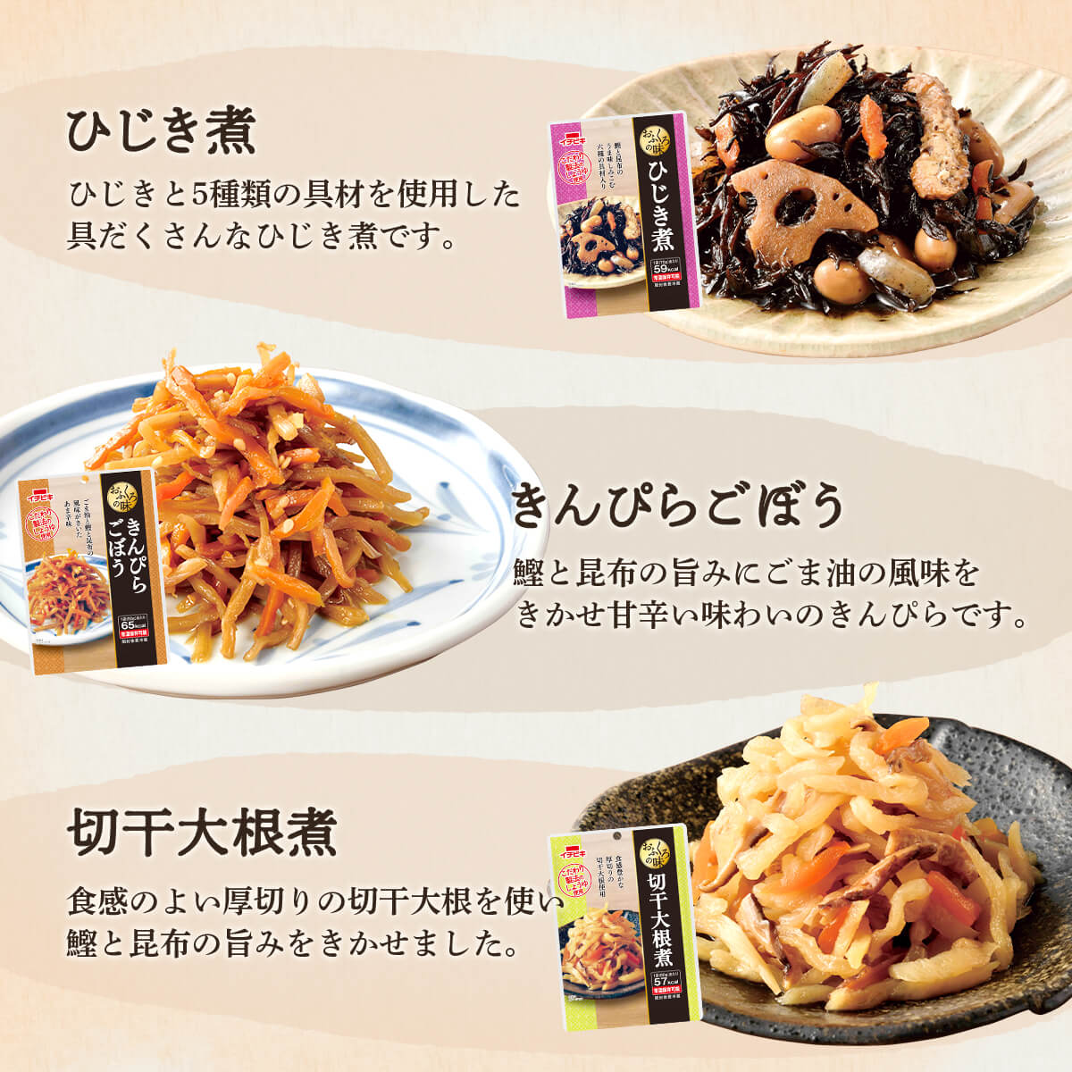 | 内容量 | ■ おふくろの味 れんこんのきんぴら 75g さといも煮 70g たけのこの土佐煮 75g 野菜のうま煮 60g ひじき煮 70g きんぴらごぼう 60g 切干大根煮 80g 7種 各3食 合計21食 製造メーカーからの仕入商品の為 賞味期限はお届け時のものではございません。 予めご了承くださいませ。 |