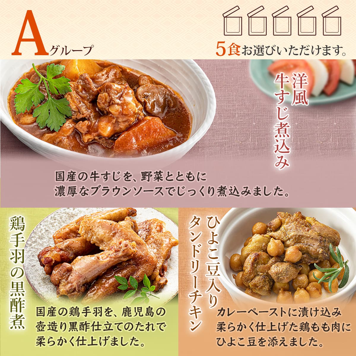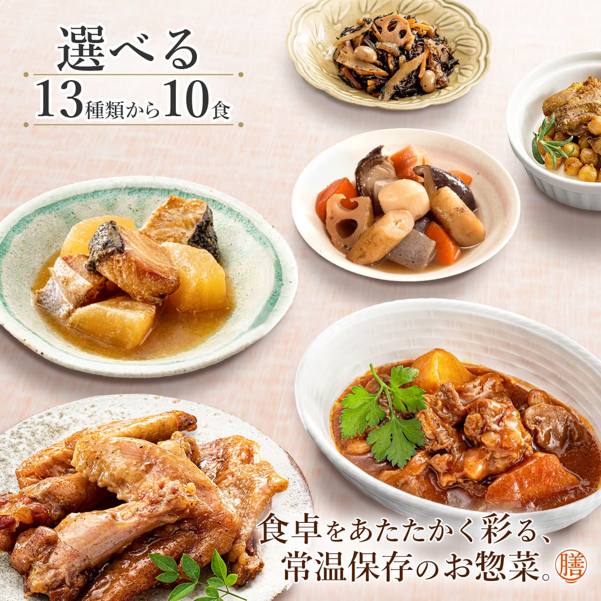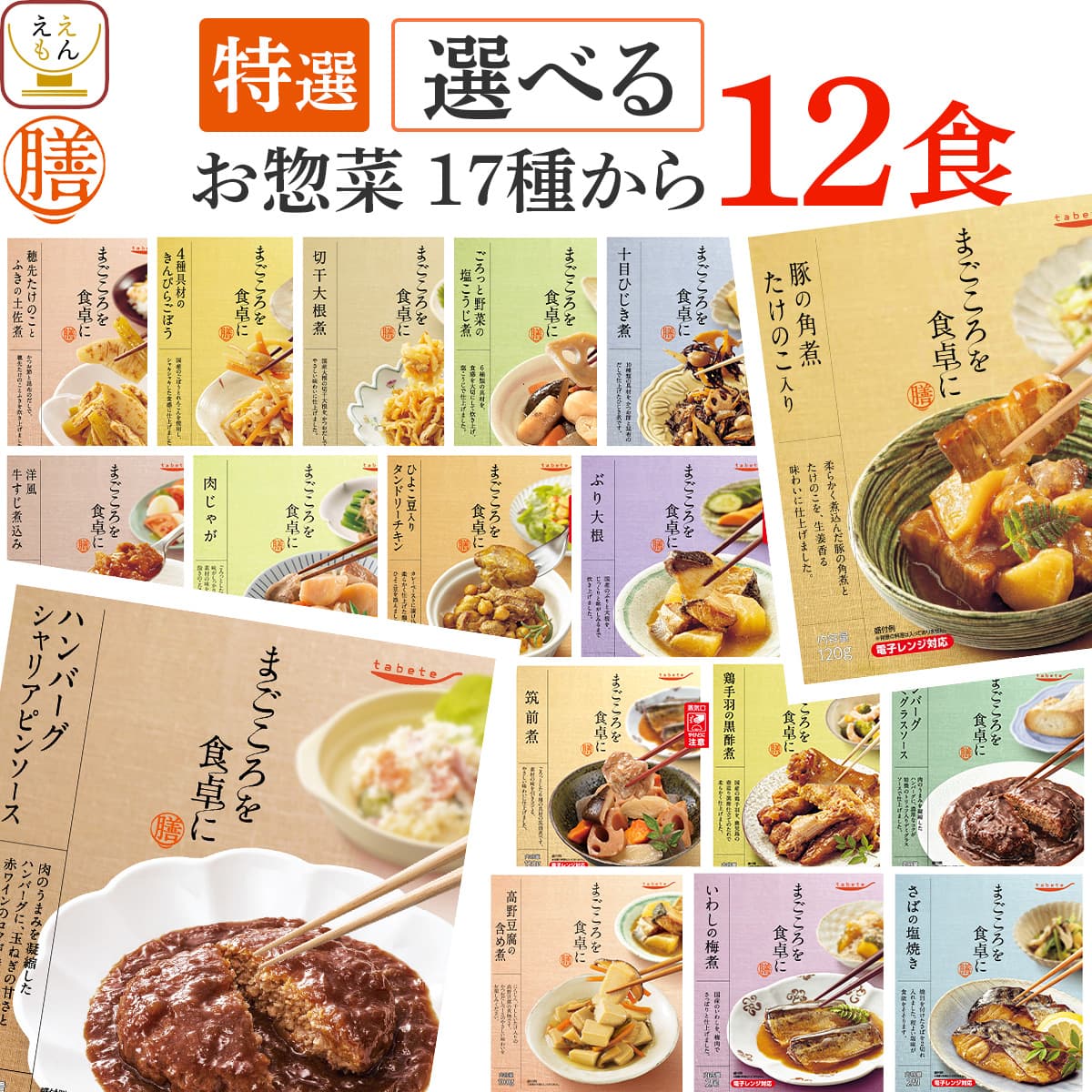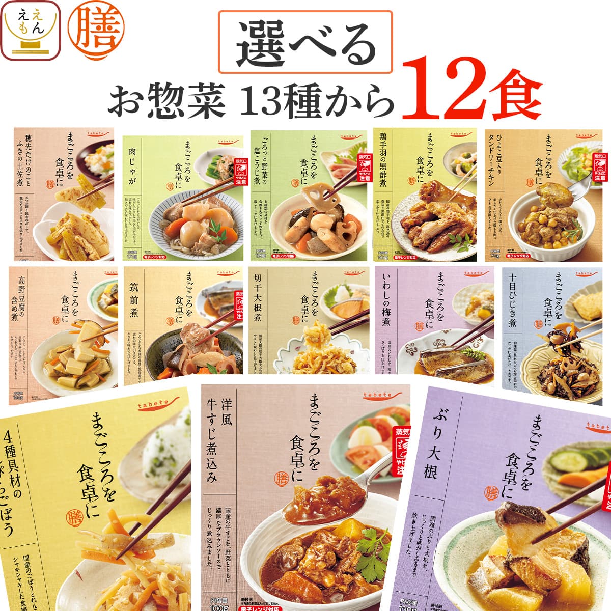 ![]() 膳 選べる12食 | ![]() 人気10種 |