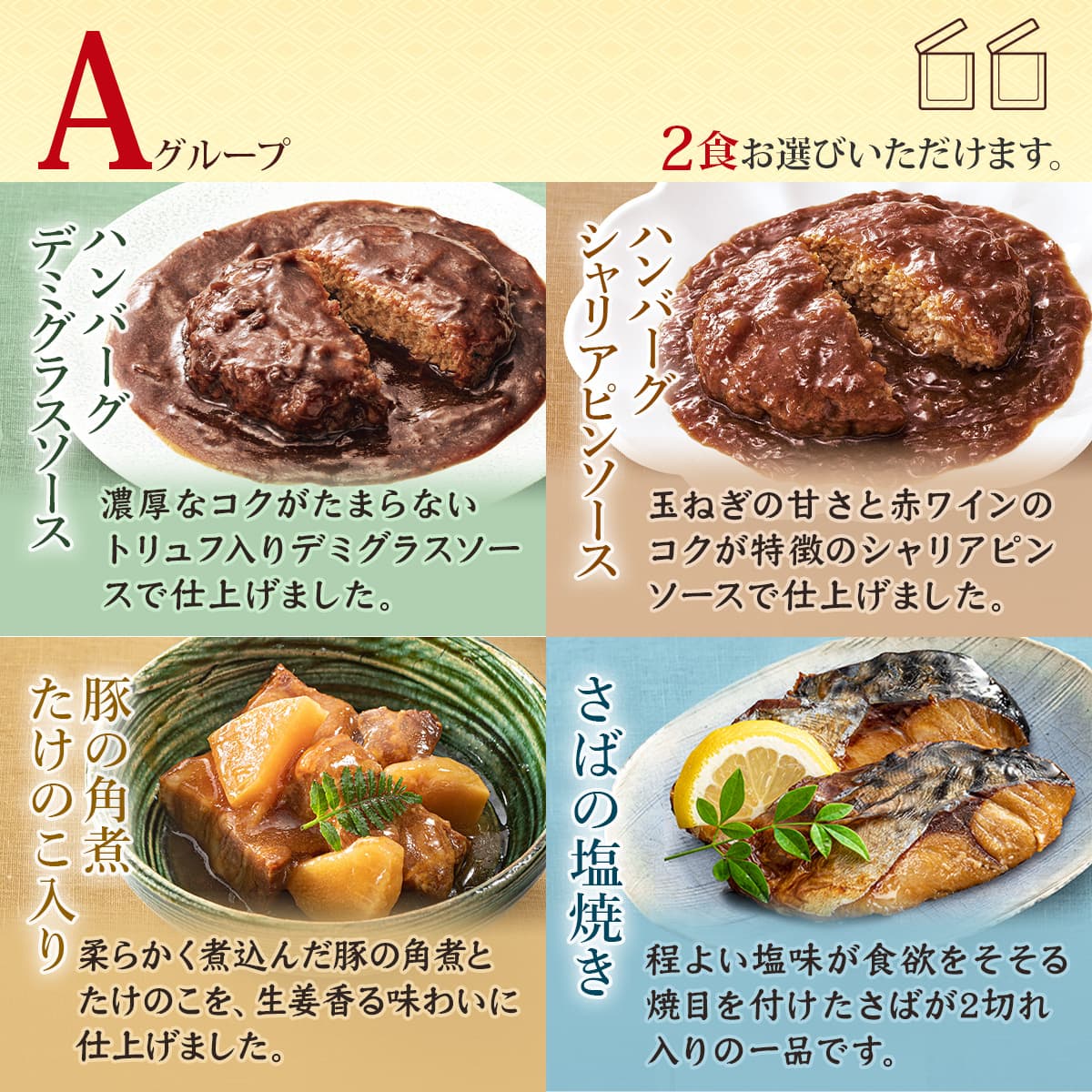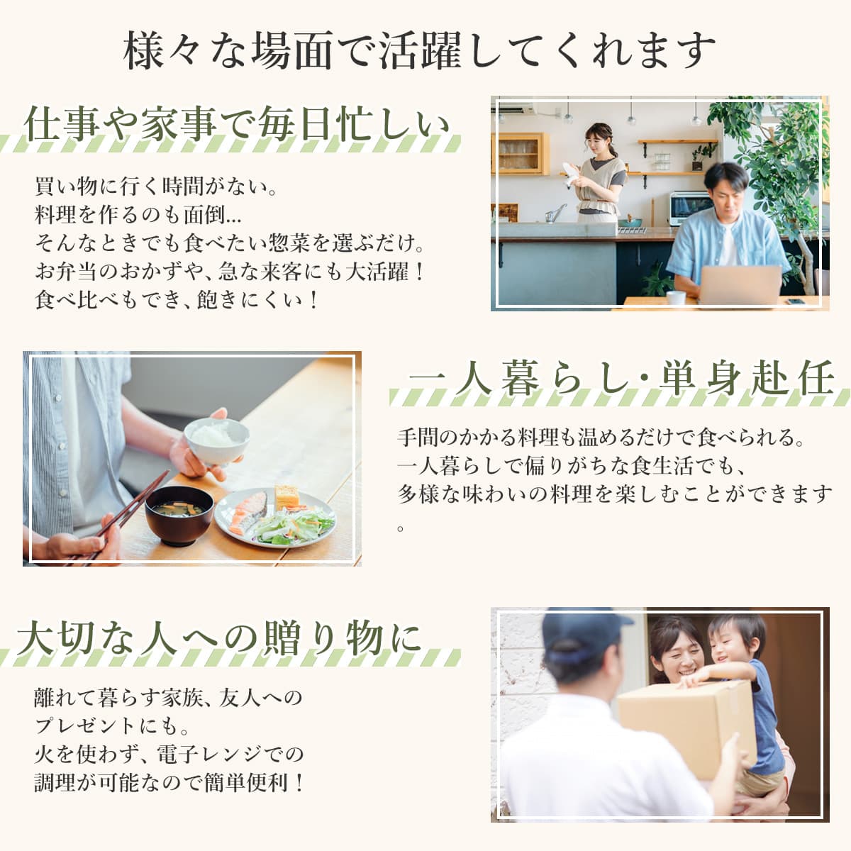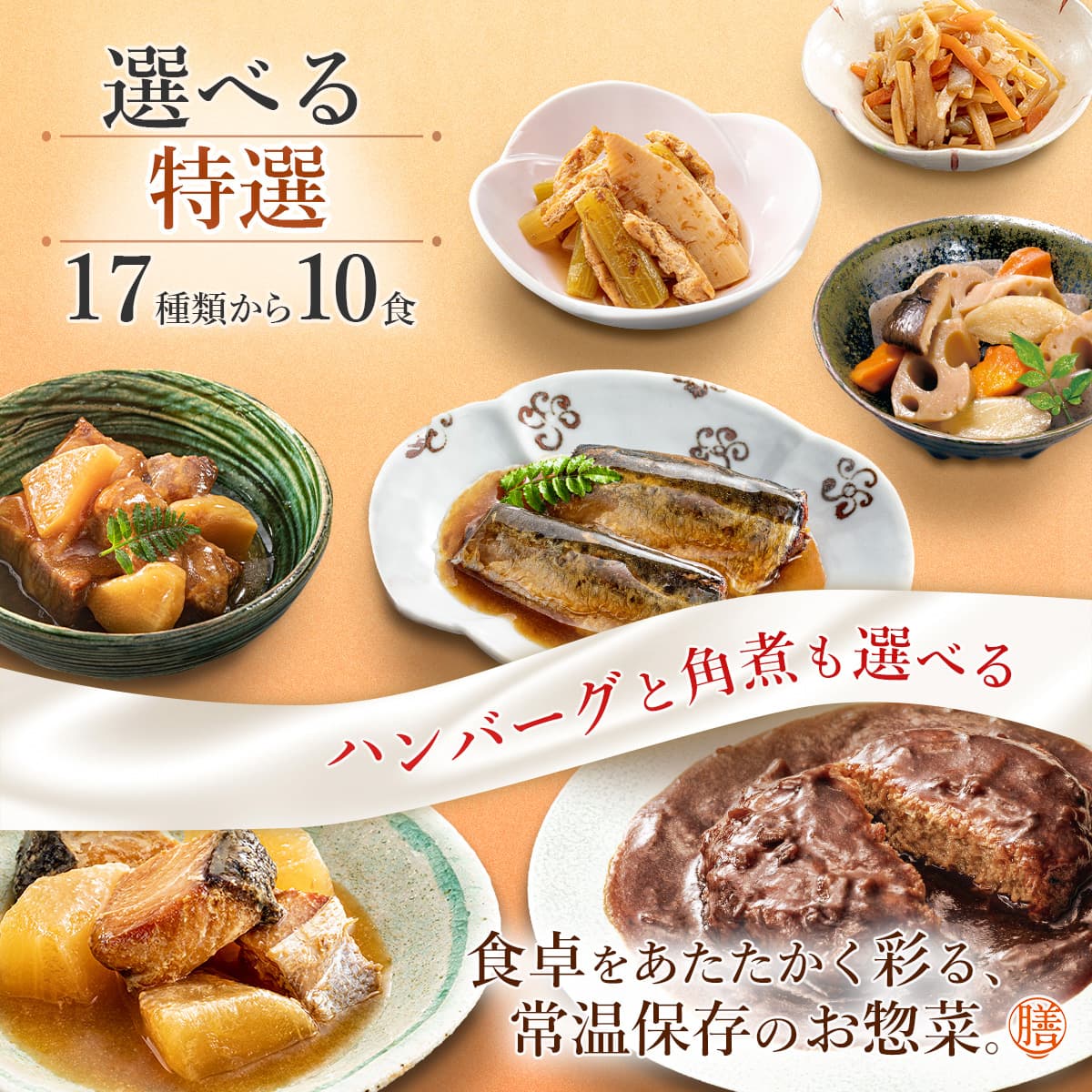 ![]() 膳 選べる12食 | ![]() 人気10種 |