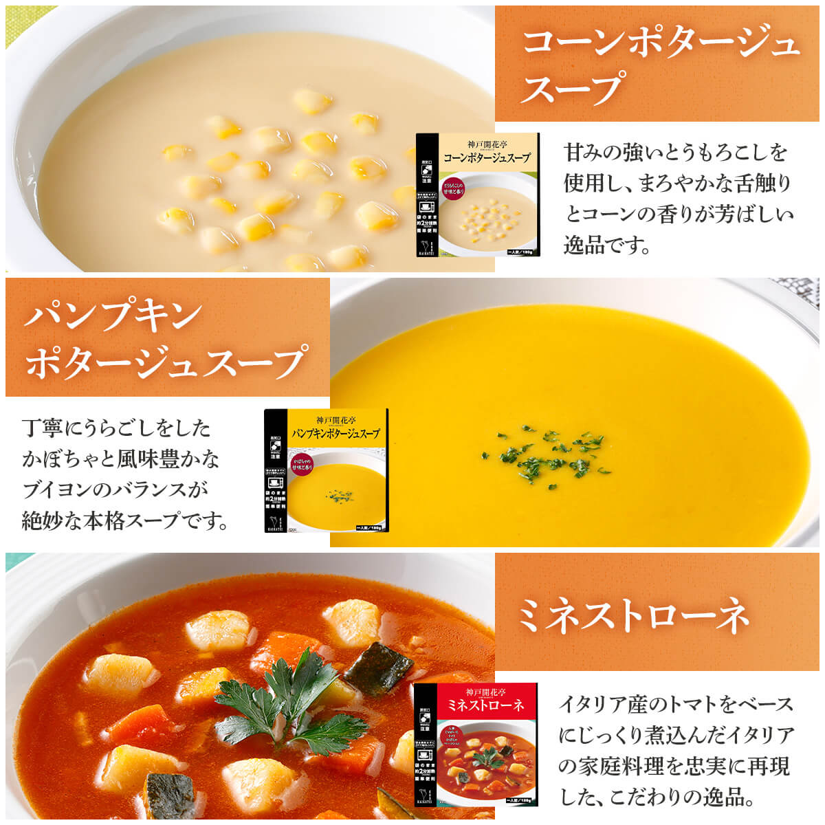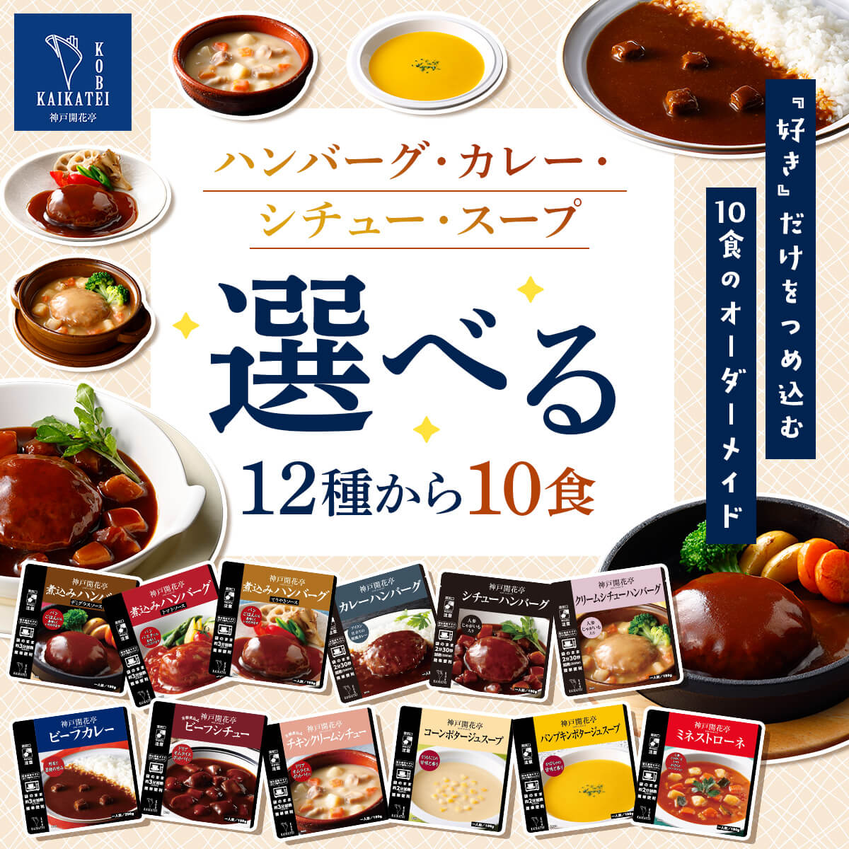 ![]() 神戸開花亭 12種12食セット | ![]() ハンバーグ・スープ 5種10食セット |