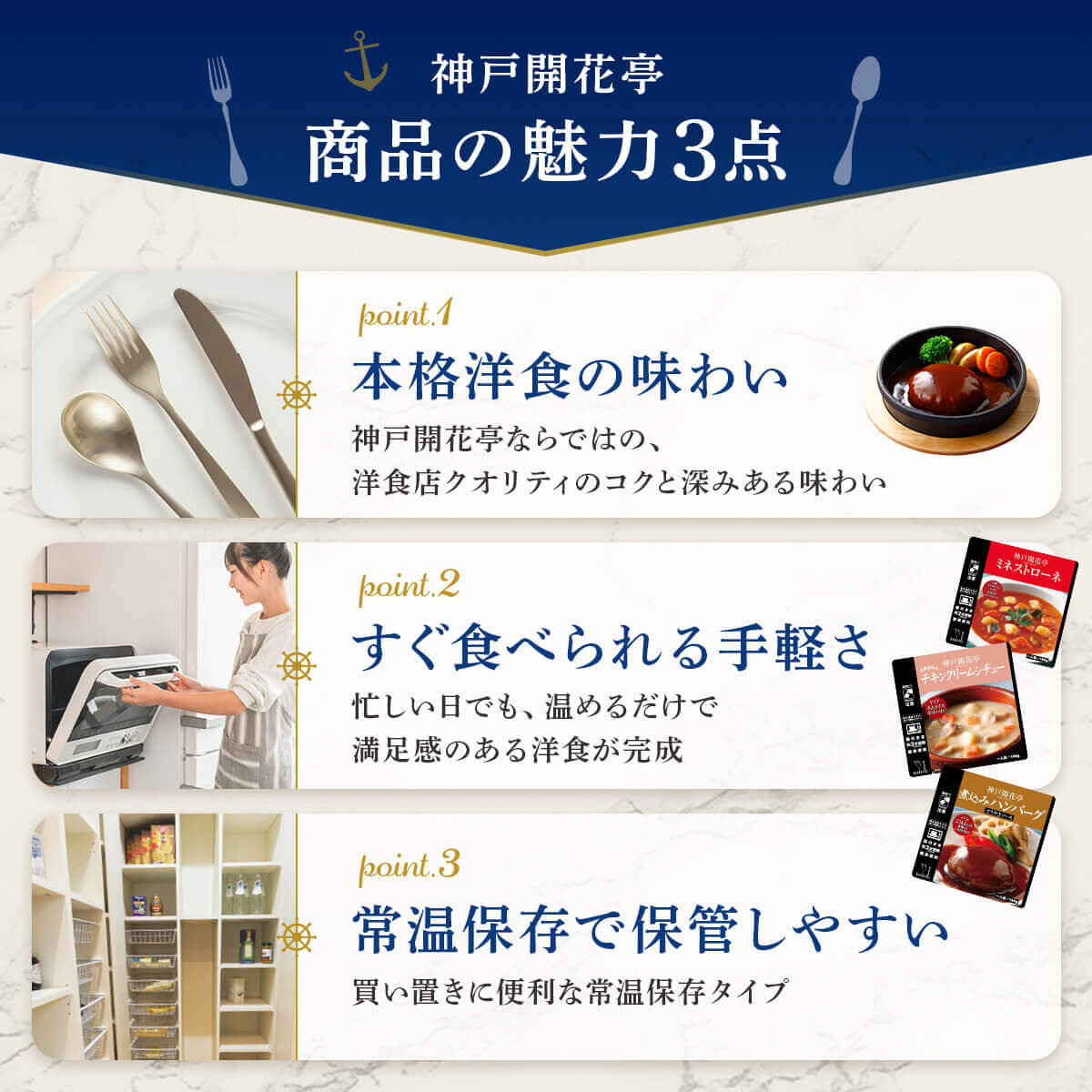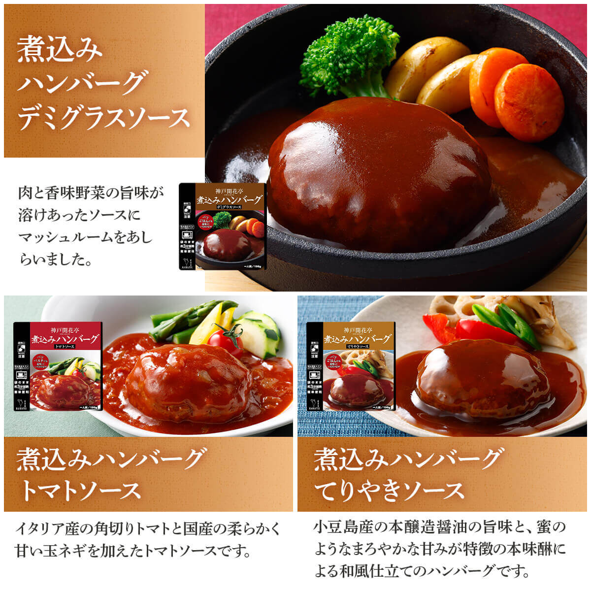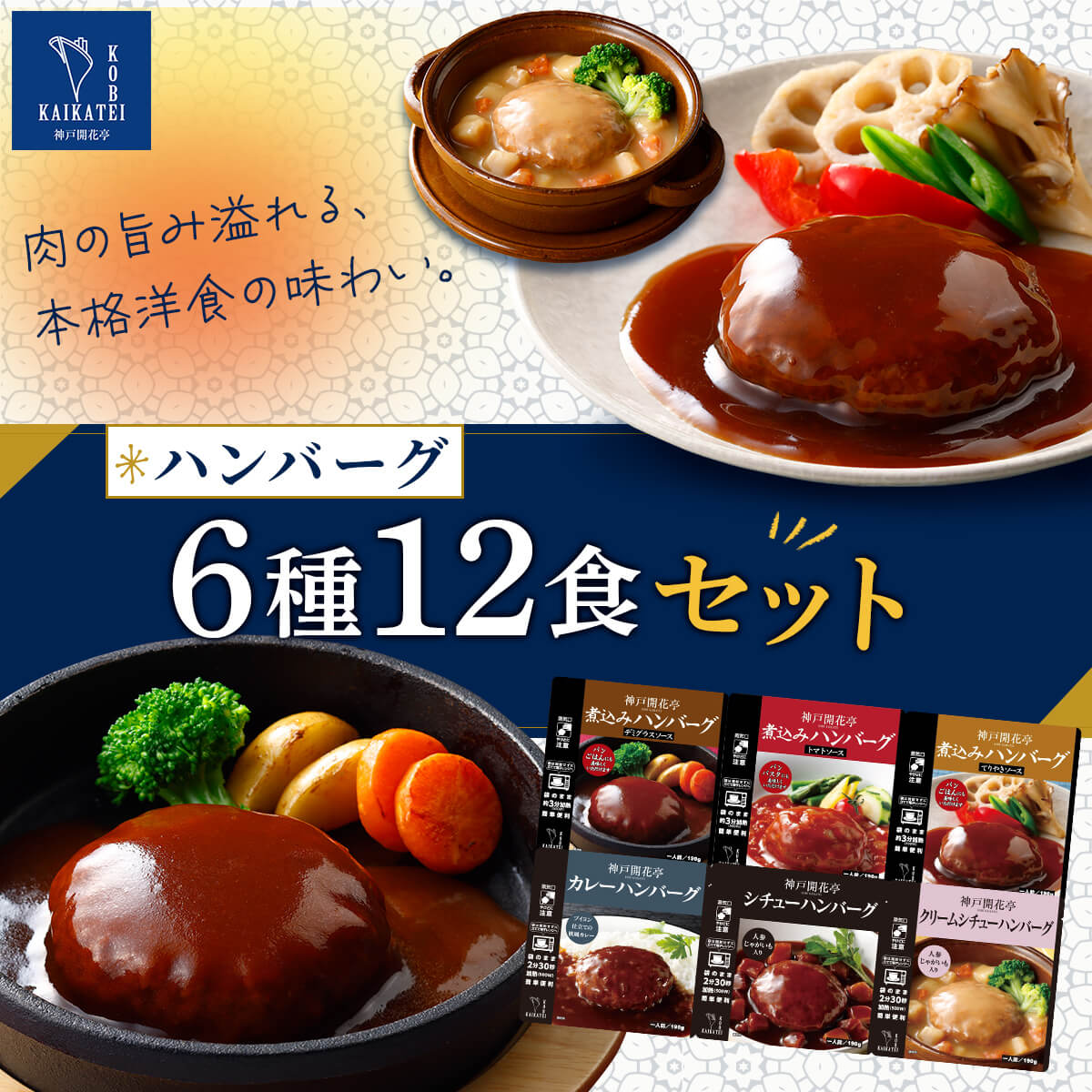 ![]() 神戸開花亭 12種12食セット | ![]() ハンバーグ・スープ 5種10食セット |