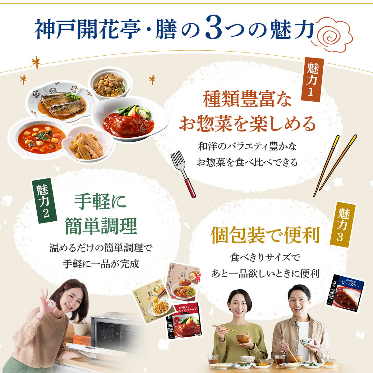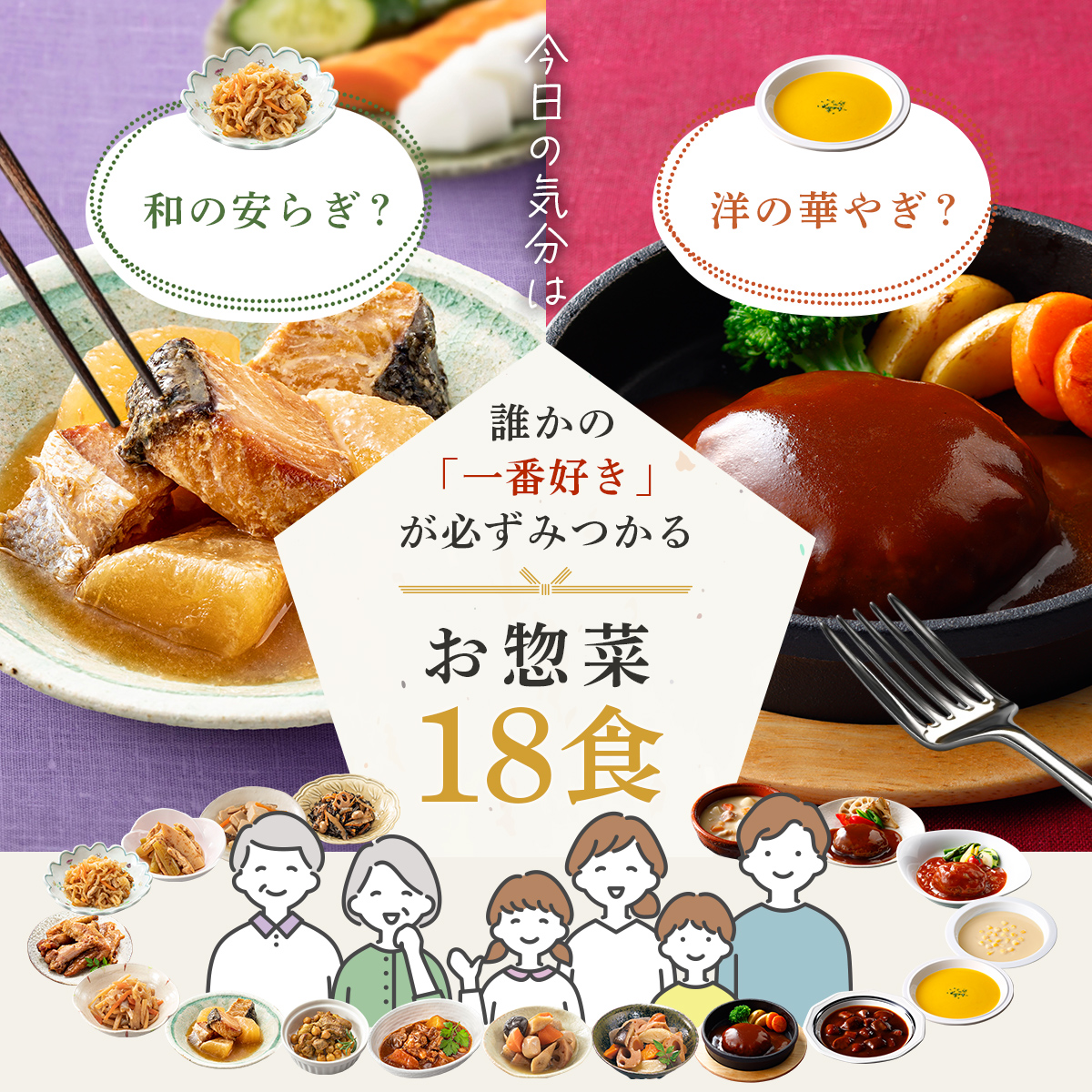 ![]() 神戸開花亭×膳 和洋惣菜20種 | ![]() セットで選べる 肉惣菜10食 |