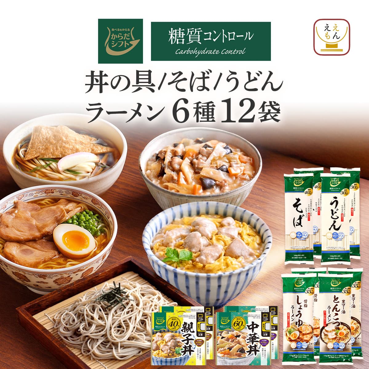 | 内容量 ※賞味期限 | ■ 糖質コントロール 親子丼 150g×4 中華丼 150g×4 そば 160g×1 うどん 160g×1 ※製造日より1年(12ヶ月) しょうゆラーメン 218g×1 とんこつラーメン 170g×1 ※製造日より240日(8ヶ月) 6種 12袋 製造メーカーからの仕入商品の為 賞味期限はお届け時のものではございません。 予めご了承くださいませ。 |