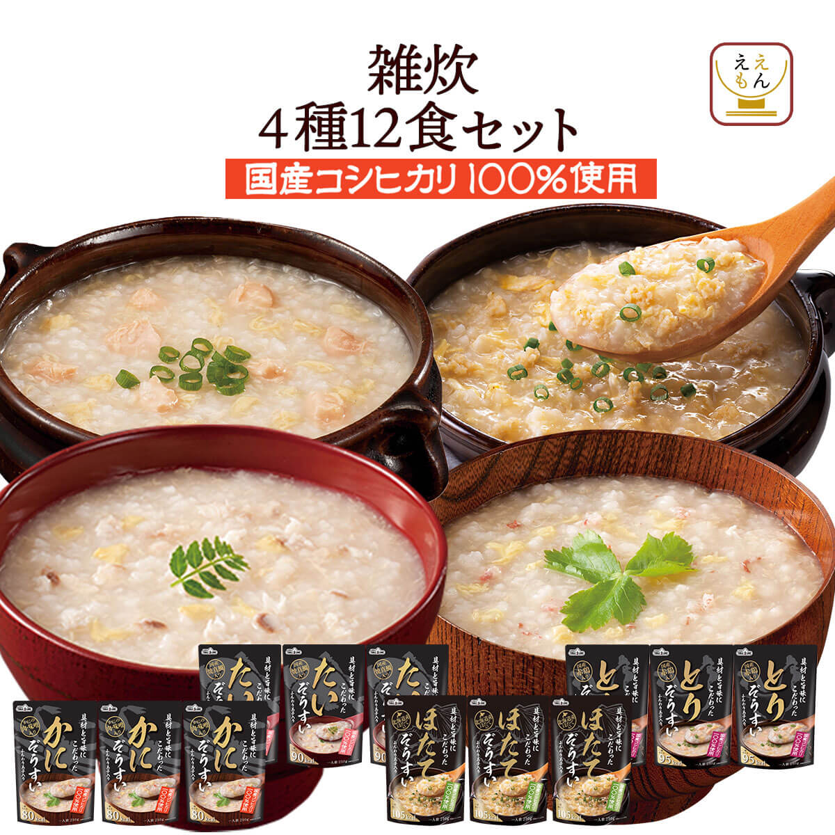 | 内容量 | ■雑炊・おかゆ・スープ粥 12種12食セット かに雑炊 250g たい雑炊 250g ほたて雑炊 250g とり雑炊 250g 白がゆ 250g 梅がゆ 250g 玉子がゆ 250g 鮭がゆ 220g かつお醤油粥 220g 鶏塩粥 220g 参鶏湯風粥 220g 中華風粥 220g ■おかゆ・雑炊 8種12食セット 白がゆ 250g ×2 梅がゆ 250g ×2 玉子がゆ 250g ×2 鮭がゆ 220g ×2 かに雑炊 250g たい雑炊 250g ほたて雑炊 250g とり雑炊 250g ■スープ粥・雑炊 8種12食セット かつお醤油粥 220g ×2 鶏塩粥 220g ×2 参鶏湯風粥 220g ×2 中華風粥 220g ×2 かに雑炊 250g たい雑炊 250g ほたて雑炊 250g とり雑炊 250g 3種類のセットからお選びいただけます。 |