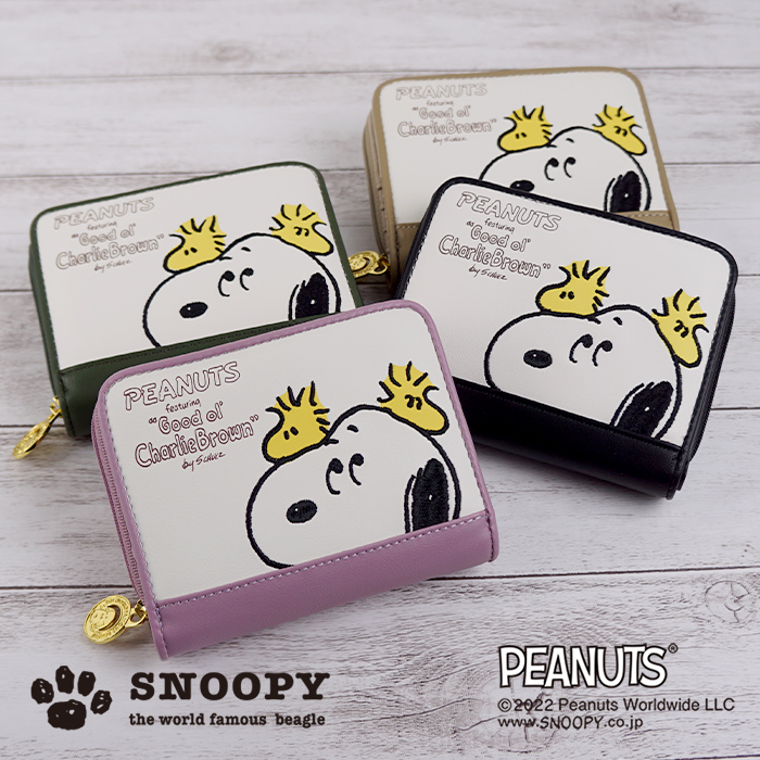 味わい深い刺繍で描かれたスヌーピーがかわいい♪ たっぷり入る二つ折り財布