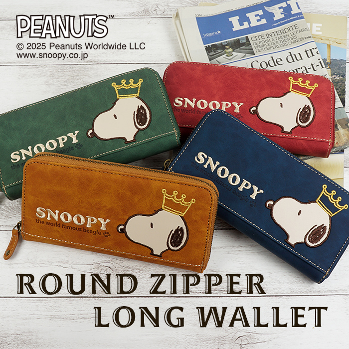 風合いのあるフェイクレザーにスヌーピーの刺繍が映える、