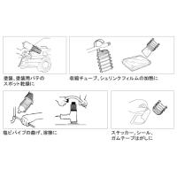 ●電源(V):AC100●消費電力(W):1000●本体寸法(mm)幅×奥行×高さ:285×70×185●熱風温度:室温〜450℃(連続可変) ノズル口から10mmの位置で測定●風量:0.2m[[*3]]/min●風速:360m/min ●質量 700 g ●温度可変タイプの工業用熱風器です。 用途◆塗料の乾燥 局部的な塗料乾燥に最適 ◆塗料の調色 調色(色あわせ)時の乾燥 ◆シュリンクフィルム フィルム熱収縮 ◆収縮チューブ 電線カバー等の熱収縮 ◆パテ剤 自動車用バンパー等パテ剤の補修 ◆インテリア関係 ビニールクロス、床材等、床施行作業 ◆プラスチック成型品・ゴム製品 プラスチック製品(熱可塑性)の曲げ、組入り、組込作業に ◆塩ビパイプ 曲げ加工 ◆石材 石材の研磨作業の乾燥、表面ツヤ出し剤の乾燥、色入れの乾燥、ゴム貼り前の乾燥に(名入れetc.) ◆ラベルはがし ◆熱硬化性樹脂 硬化促進 ◆解凍 冬期凍結した水道管、機械類の加熱