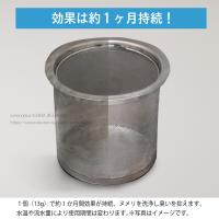 ストレーナー(ゴミ受け)に吊るすだけでストレーナーや排水パイプに付着した細菌類を除菌し、ヌメリ、黒ずみ、悪臭の発生を抑えます。ワサビの主成分を蒸散させることにより、カビ、細菌の増殖を抑制し、更に銅イオンによる抗菌作用で効果を高めました。ワサビパウダーや食品添加物として使われている素材から出来ているので、塩素ガスを発生する事はありません。非塩素系ですので金属が腐食する心配がなく、プラスチックはもちろん、ステンレスや銅製のストレーナーにもご使用いただけます。非塩素系ですので塩素特有の鼻につくいやな臭いはありません。