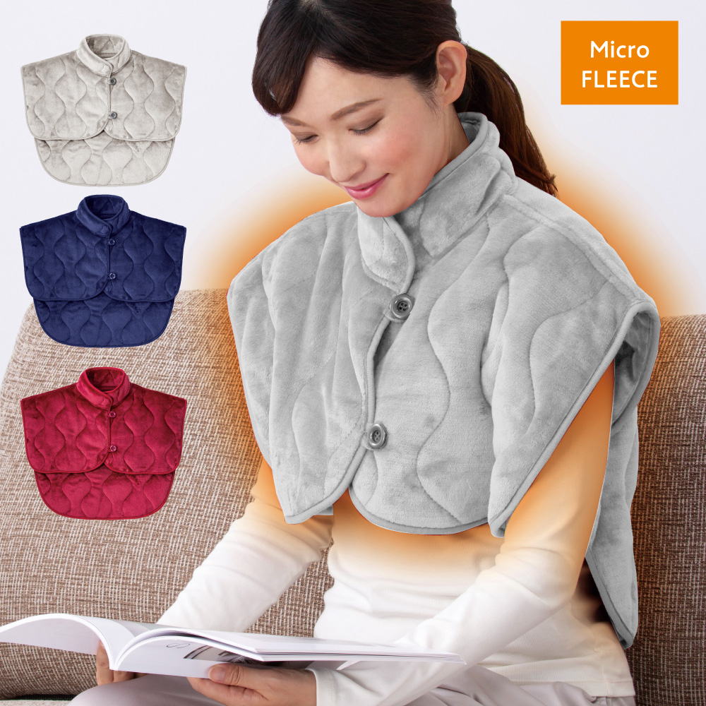 毛布のよなマイクロフリースを使った肌ざわりがしっとりふっくらな肩当て。心地よい起毛で気持ちよく、中綿をキルトしたっぷりの空気層で寒い日にも抜群のあたたかさ。首・肩・背中をこれ一つでしっかり暖め。締め付け感がなく寝返りなどの動作もラク。袖がないので、家事などの際も着用できます。リビングで過ごす寒い日のルームウェアや、布団から出る首元や肩が冷えて眠れないとお困りの方にオススメ。◆商品サイズ(約)/前丈:33cm、後丈:53cm、肩幅:61cm◆適応サイズ(約)/胸囲:80〜104cm