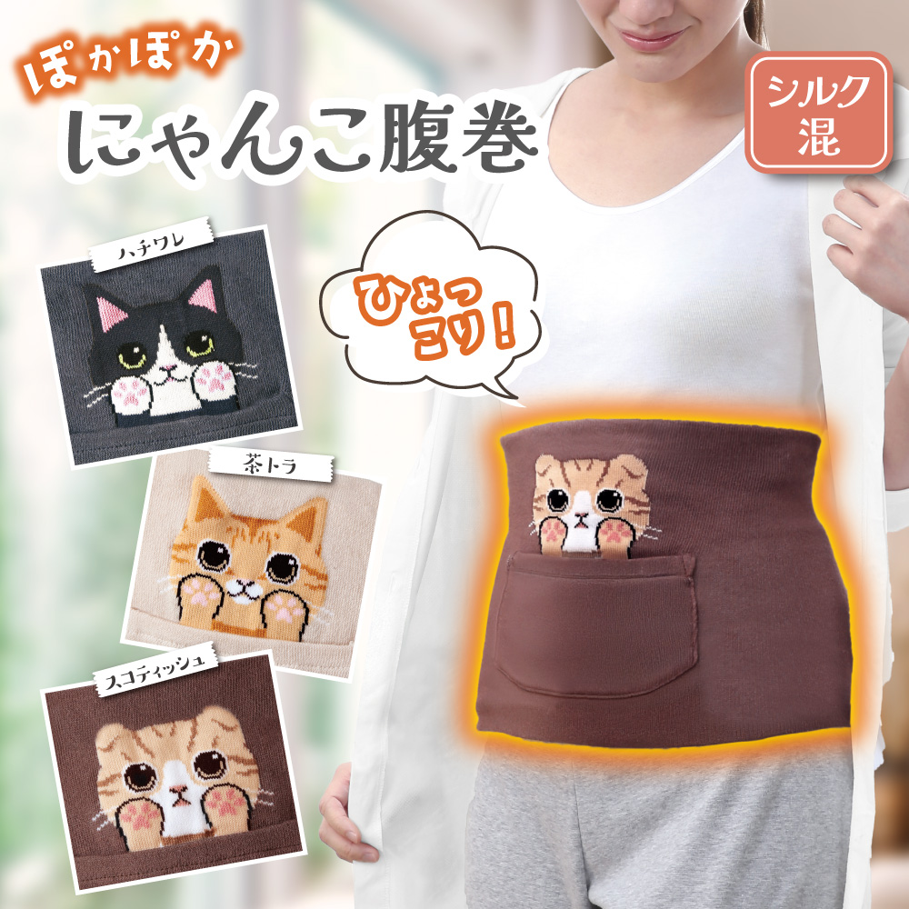 人気 にゃんこ腹巻 腹巻 腹巻き インナー 下着 レディース マタニティ 妊婦 妊活 シルク 絹 綿 おしゃれ 温活 蒸れにくい 冷え取り 冷え 対策 薄手 暖か 冬 爆買