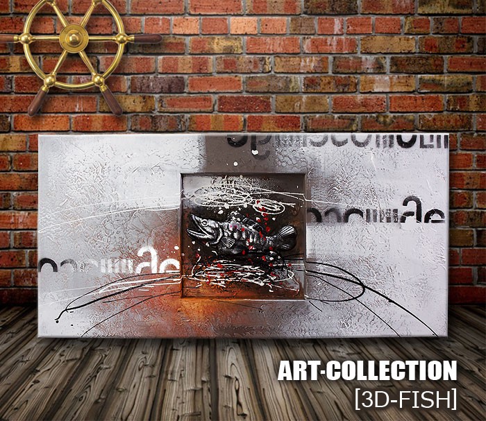 壁掛け 3D立体 フィッシュ ウォールアート アイアンペイント キャンバス製 男前インテリア おしゃれ 【 立体造型油絵 3D-FISH】 パネルアート