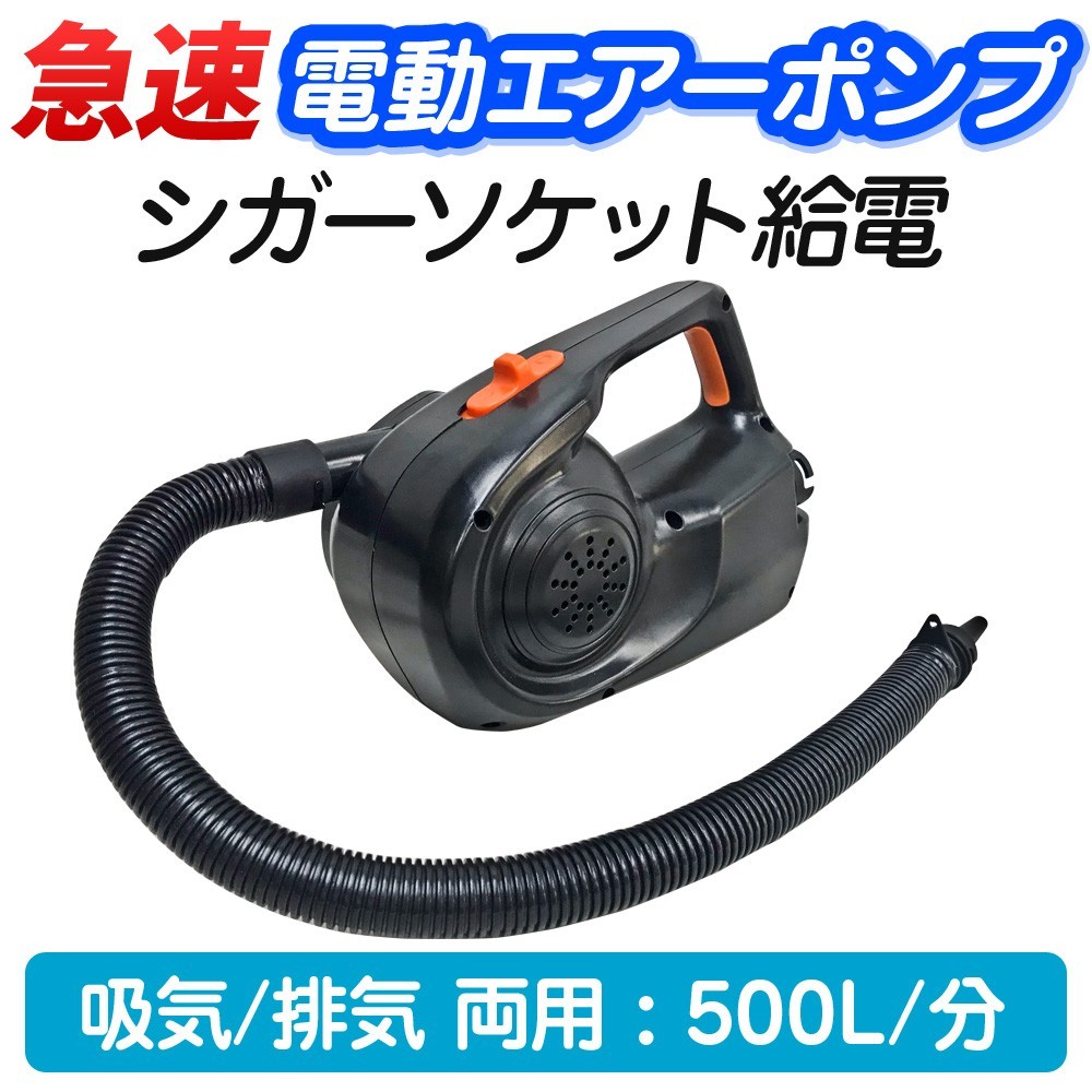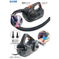 ビニール玩具やアウトドア用品急速で膨らませるだけでなく、空気注入と同じ要領で空気を排気する事もできる一台2役の電動ポンプです。