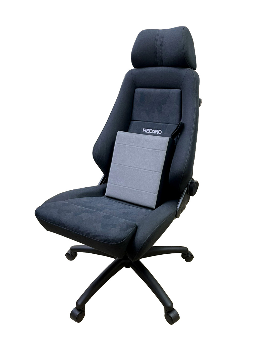 レカロシート等の自動車用シートは一般的なデスクチェアと比べて座面長があり、ゆったり座るには申し分ないですが、デスクワーク時はどうでしょう?深く腰掛けすぎて無理な姿勢になっていませんか?今お使いのシートに置くだけでデスクワーク向きの姿勢がとれるデスクワークパッドは、クッション類の材質としてポピュラーな低反発ウレタンではなく、中高度のウレタンチップを使用した文字通り「パッド」としてお使いいただくアイテムです。姿勢の維持が容易でヘタりも少なく、長くお使いいただける製品です。
