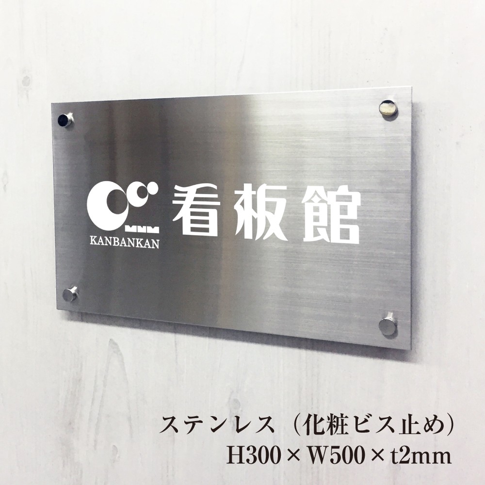 ステンレス銘板 H300×W500×t2mm 化粧ビス止め マンション看板 アパート銘板 表札 会社 事務所 おしゃれ マンション名看板 km-sus-35