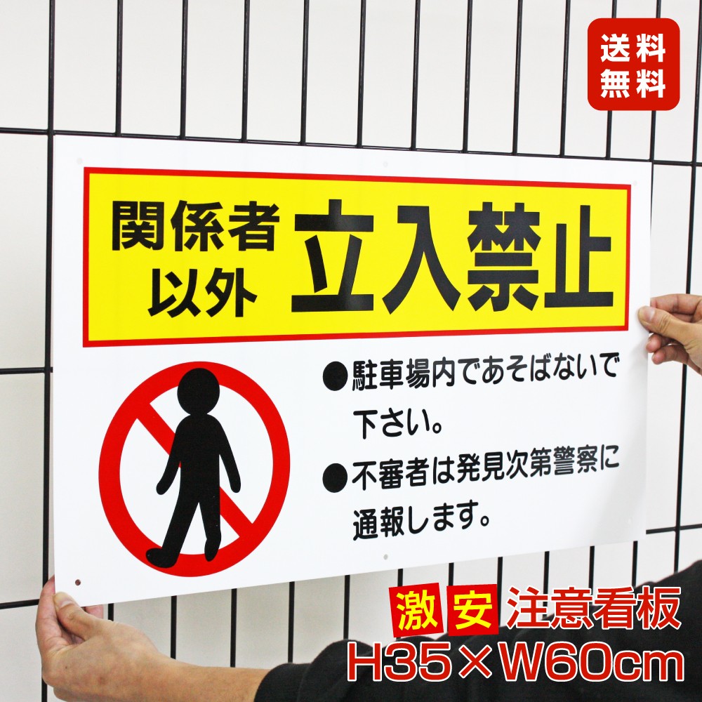 関係者以外立入禁止 激安看板 / H35×W60cm 立ち入り禁止 駐車場 サイン 不審者は発見次第警察に通報します TO-10A