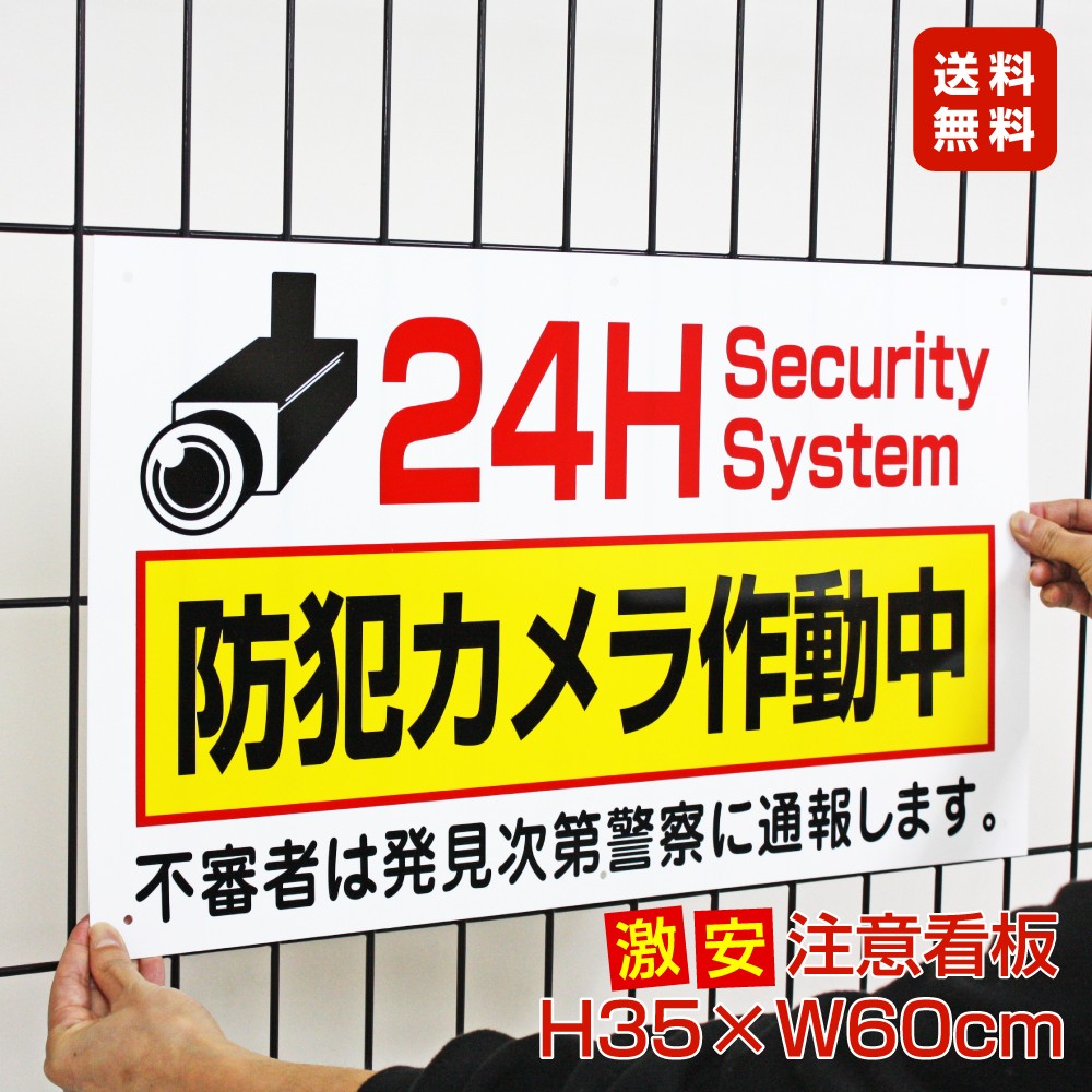 防犯カメラ作動中 激安看板 / H35×W60cm 不審者は発見次第警察に通報します 空き巣対策 駐車場 店舗用 英語 防犯看板 to-38a