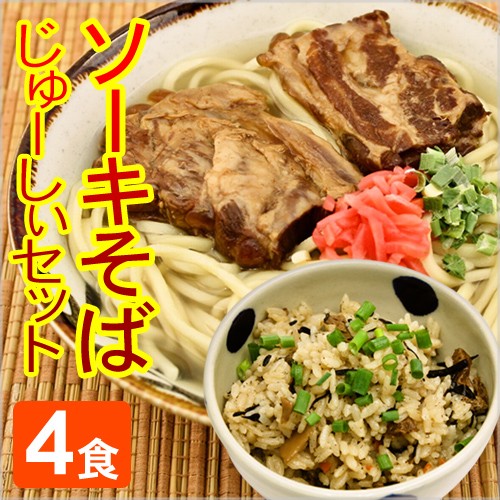 ■内容量:めん200g×4、そばだし300g×4、炊き込みご飯の素180g、味付軟骨ソーキ90g×4