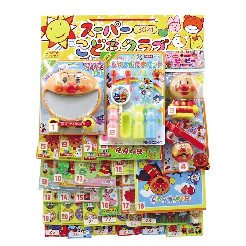 【商品説明】 アンパンマンのおもちゃ・雑貨が当たる、30名様用抽選ボードです。景品は全てアンパンマンで嬉しい!抽選くじで出てきた番号の景品をプレゼントします。