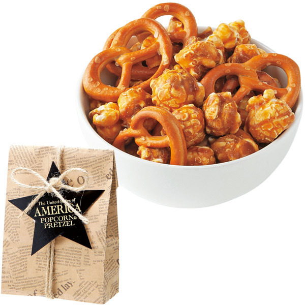 香ばしい塩味のプレッツェルと甘いキャラメルポップコーンの組み合わせが絶妙なおいしさ。アメリカらしいパッケージも人気です。
