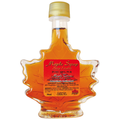 メープル独特の風味が増しているダーク。カナダらしいカエデ形のガラスボトルが人気です。