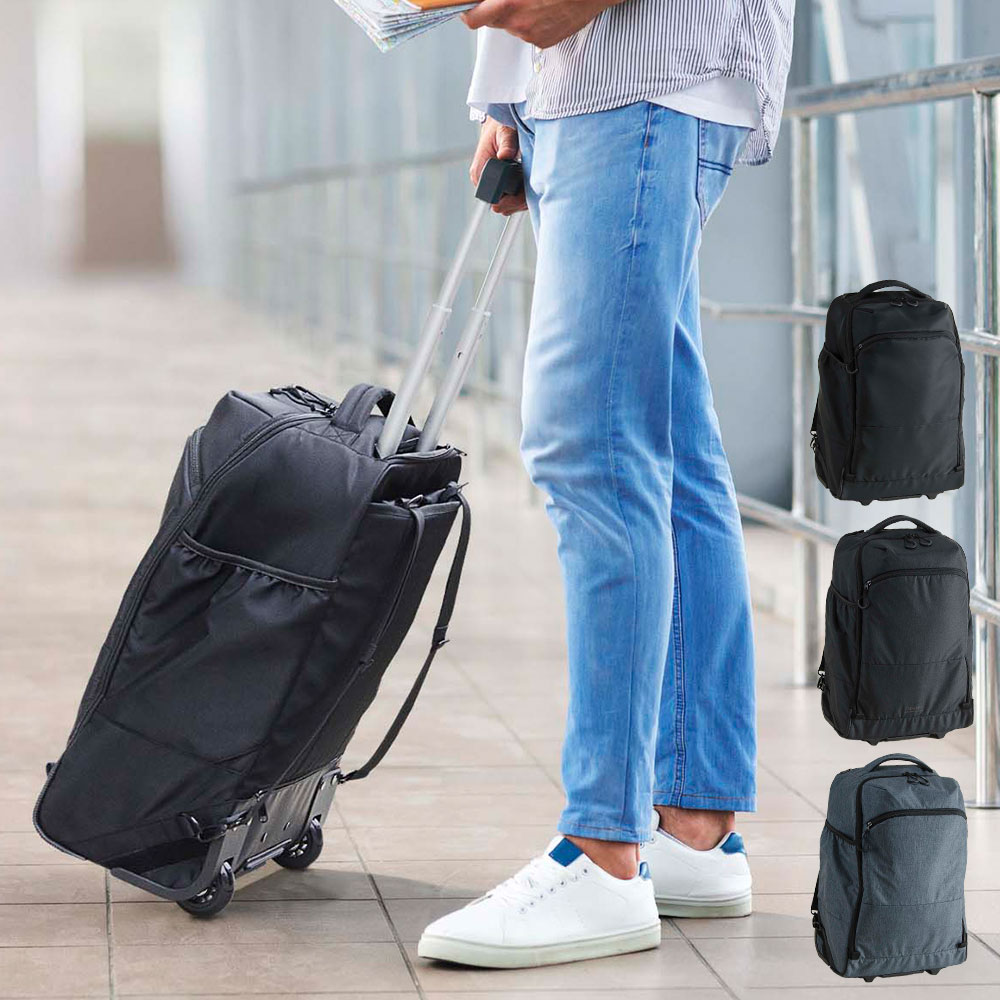 リュックにもキャリーにもなる2WAY仕様。内側にはメッシュポケットがあり、小物を仕舞う時にも便利です。キャリーバーは3段階に調整が可能で、背負うキャリー本体には衣類や荷物を固定するバックルベルト付き。背負う際にタイヤの汚れを防ぐ収納式タイヤカバーがついている多機能キャリーです。