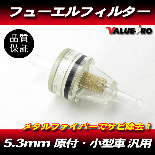 差込径 5.3mm メタルファイバー フューエルフィルター 1個 / メタル濾過 ガソリンフィルター 燃料フィルター 原付 小型車 建機 農機 他