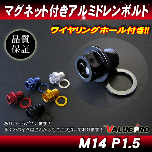 M14 P1.5 ブラック オイルドレンボルト マグネット付 / ホンダ ヤマハ スズキ マツダ ミツビシ
