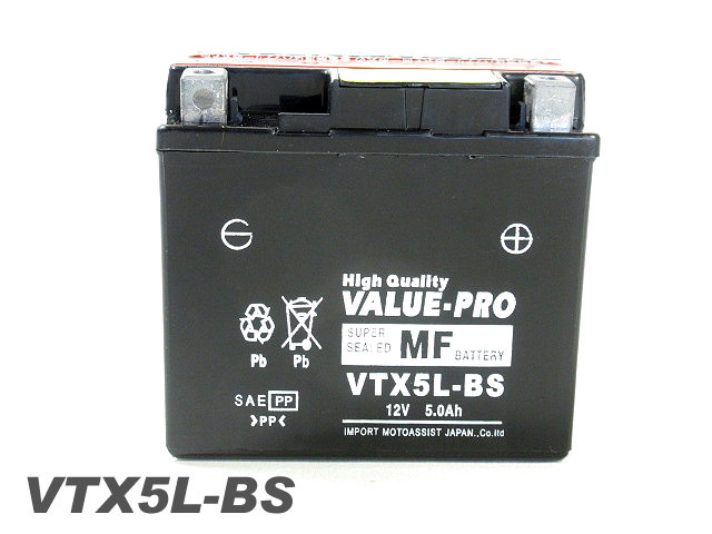VTX5L-BS 即用バッテリー ValuePro / 互換 YTX5L-BS XR250R BAJA XR250モタード MD30 リード80 リード100 スペイシー80 スペイシー100