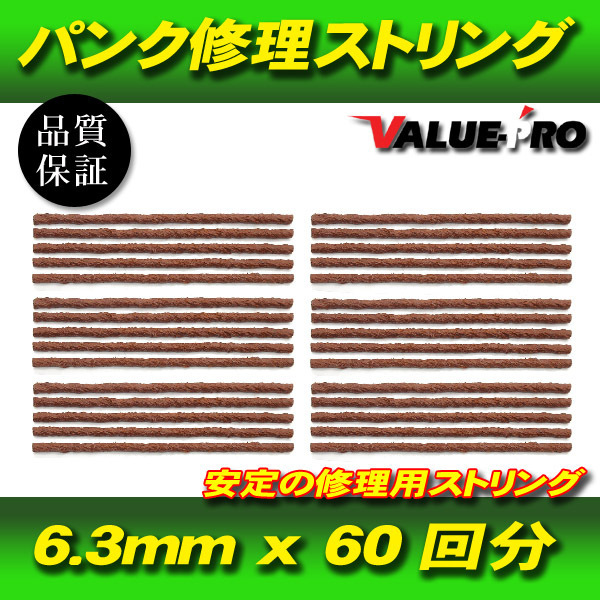 パンク修理用 ストリングゴム 6シート 30本 60回分 / ラバースティック 太さ6.3mm x 長さ20cm チューブレスタイヤ