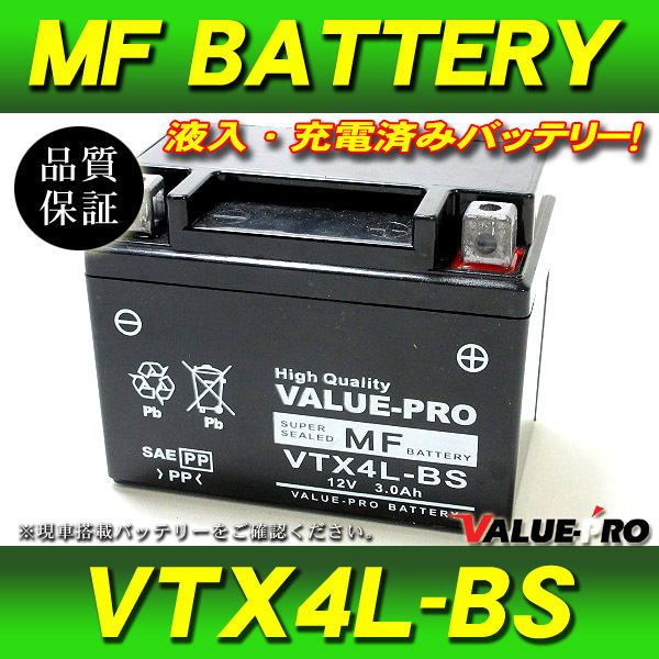 新品 充電済バッテリー VTX4L-BS 互換 YT4L-BS / KSR110 レッツ4 レッツ5 チョイノリ バーディ RG50 ウルフ K90 ガンマ