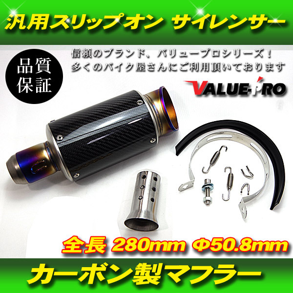 スリップオン サイレンサー 汎用マフラー カーボン製 50.8mm 51mm HONDA YAMAHA SUZUKI KAWASAKI