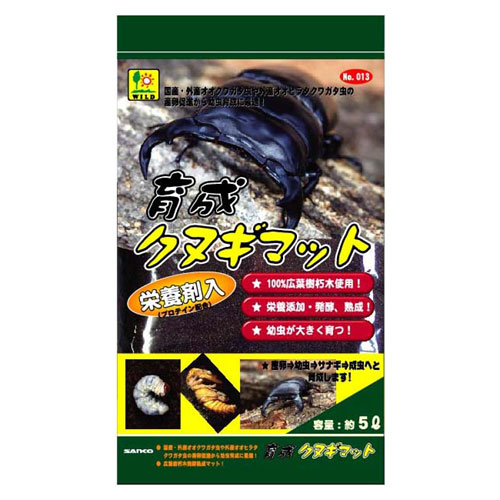 広葉樹材朽木を粉砕し栄養剤「プロテイン配合」を添加し、発酵熟成させ、外産、国産オオクワガタやオオヒラタクワガタ虫の産卵から幼虫育成用として作られた本格的なクワガタ虫専用のマットです。