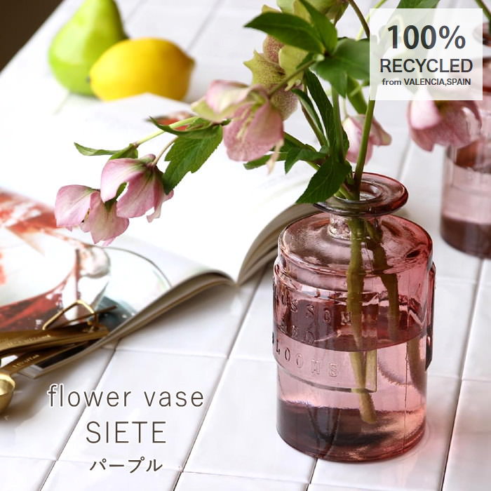 VALENCIA リサイクルガラス フラワーベース SIETE パープル 花瓶 おしゃれ 北欧 ガラス