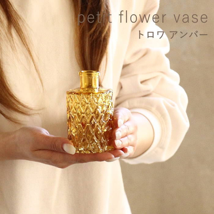 プチフラワーベース トロワ アンバー 花瓶 おしゃれ ガラス 小さい 一輪挿し 花びん 北欧