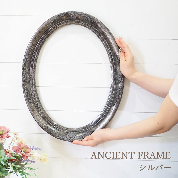 ANCIENT アンティークスタイル フレーム オーバル Lサイズ シルバー 額縁 額 枠 おしゃれ 壁飾り ウェルカムボード